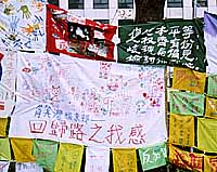 この写真はチムシャーツイの広場ですが、民主主義を守ろうという内容でビラ配り(ちゃんともらってかえってアルバムに記念品としてはってあります)をしていたり、拡声器をつかって道ゆく人たちに訴えていました。