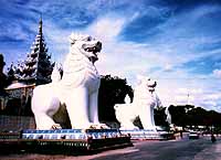 【写真】 マンダレーヒル登り口の巨大狛犬。足元の点のようなのが人と車です。