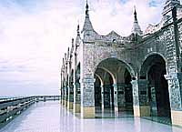 寺院は壁が小さい鏡がタイルのように使ってあって、それが日の光でキラキラと輝いて実に美しい光景でした。
