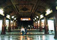 ここのパゴダも丘の上に位置してまして、入り口は東西南北の四方のすそ野におのおのあります。参拝者はそのうちの一つから入るわけですが、入り口を入って階段を昇ると、このような廊下がしばらくあります。ここでも、やっぱり占い師とか、それから花屋さんがいっぱいいました。