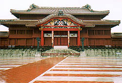 首里首里は、沖縄観光ではよく紹介されるところですね。この首里城のあたりは、戦時中は日本軍の司令部が置かれていたそうで、それで相当の攻撃を受けたところだそうです。で、写真の首里城は復現されたものなのです。残念ながら訪問したときは小雨が降ってて、沖縄の太陽に光り輝く首里城というわけにはいかなかったのですが、春雨の中に落ち着いた雰囲気で佇む首里城も趣があって良かったですよ。沖縄でよく見る赤瓦屋根の左右には竜がいて、中国文化の影響を感じました。赤は瓦の他にも、城の中の広場も赤と白のストライプ模様で、儀式の時にはここの家来が並んだそうで。
