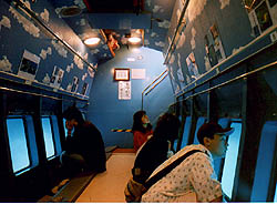 で、ホェールウォッチングに行き損なって、えー、船でないんですかぁー、どーしょー、っと旅行代理店のカウンターで悩んでいると、水中観光船のパンフが置かれていて、じゃあと、こっちに乗ることにしました。水中観光船といっても半分だけ水中で、要は船の船底に窓が付いた様なものです。約1時間の遊覧で3000円とちょっと高かったのですが、まあ、せっかく来たんだしと、乗ってみました。写真のような雰囲気で、窓越しに見える海は、海底の珊瑚や魚たちが手を伸ばせば届くくらいの近さで、見ることが出来ました。ほんと、きれいな海でした。