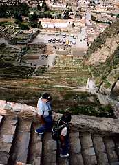 ツアーガイドのおばさんは、疲れてる人は麓の村でゆっくりしてていいですよといってましたが、実際、空気が薄いので結構息が切れるし、大変でした。とはいうものの、広大な遺跡、巨石の数々、途中で待ちかまえているインディヘナおばちゃん+子供、一曲歌った後で求められる寄付、とそれはそれは、すばらしい想い出です。