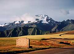 帰り道、太陽の光もだいぶ傾いてきて、きれいな風景となりました。後ろの山はクスコあたりの最高峰(名前は失念)だそうです。