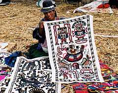 例によってこの島独自の暮らし・文化があるそうで、詳しくは島の広場に面する博物館に、家具や織物などが展示されてました。なんと、日本の雑誌(おそらく文化人類学関連)もページが見開きで展示されていて、タキーレ島がついに観光客を迎えるようになったこと、それによる島民の生活の変化、島独自の文化の破壊、等々が日本語で説明されてました。年代が不明だったのですが、こんな風に観光客が来るようになったのは最近のようですね。