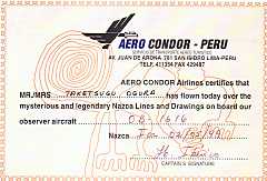 エアロコンドル社発行の飛行証明書です