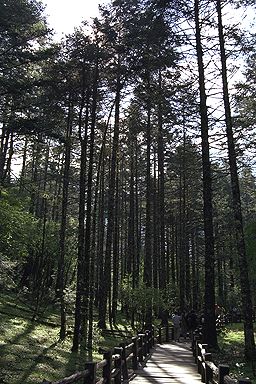 ロープウェイで登ったところに杉の林への入り口があり、日射しも和らぐ遊歩道を、杉の香りが混じる高原の風を切りながら、ちょっと早足で歩きました。木の香りって、何故か心を落ち着かせますよね。